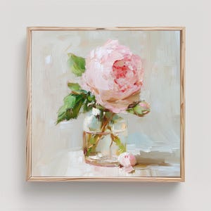 Peony Painting Print: Pink Flower Impasto Oil Wall Art